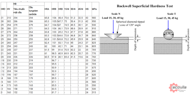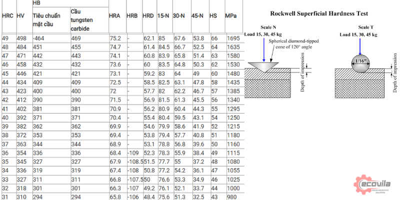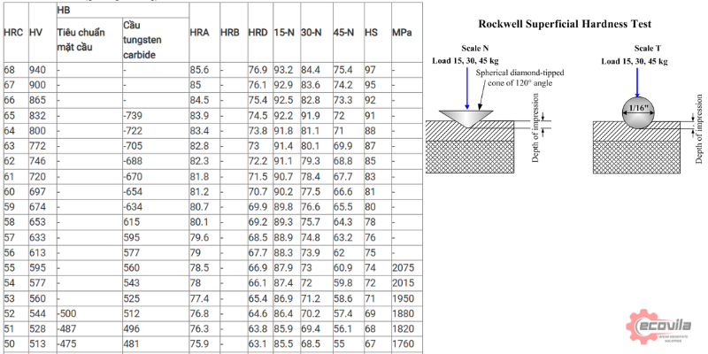 HV – HRB – HRC là ba thang đo khác nhau, không thể có một công thức duy nhất để quy đổi tuyệt đối.